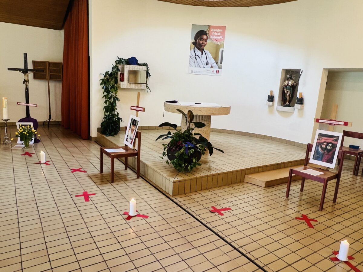 Die Osterkerze brennt im Altarraum, ein Zeichen dafür, dass das Licht bleibt.