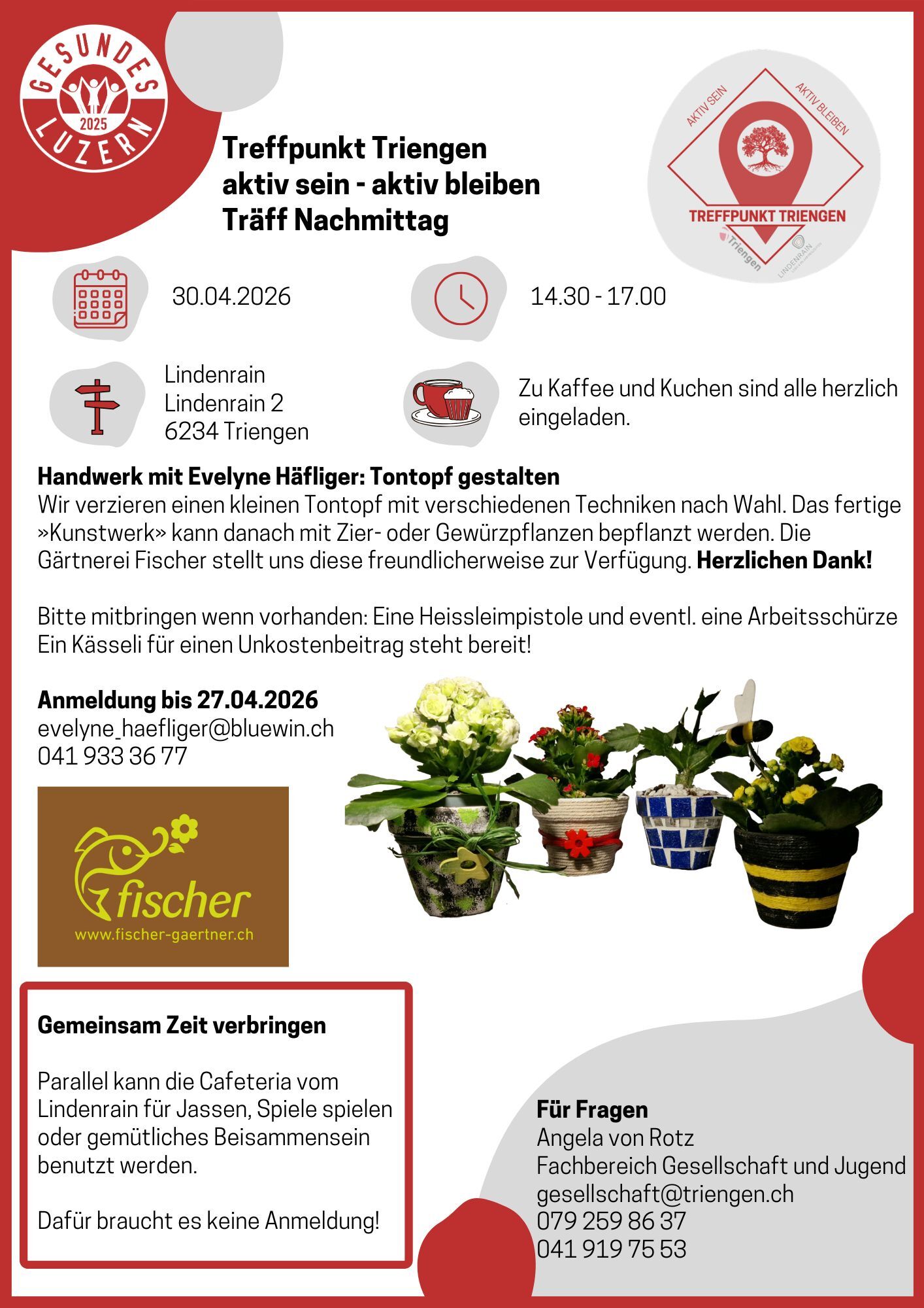 Anmeldung für Tontopf: bis 27. April 2026 an Evelyne Häfliger, evelyne_haefliger@bluewin.ch oder