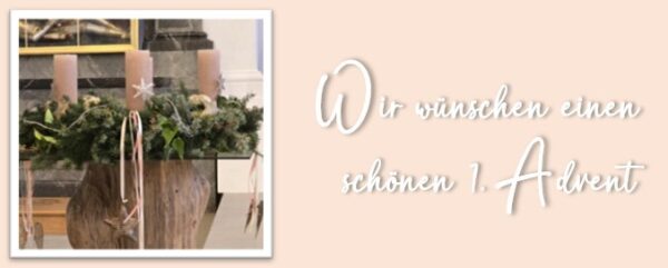 In diesen Gottesdiensten begehen wir auch den 1. Advent. Wir laden herzlich dazu ein, Adventskränze oder Advengtsgestecke mitzubringen, um sie in der Kirche segnen zu lassen.